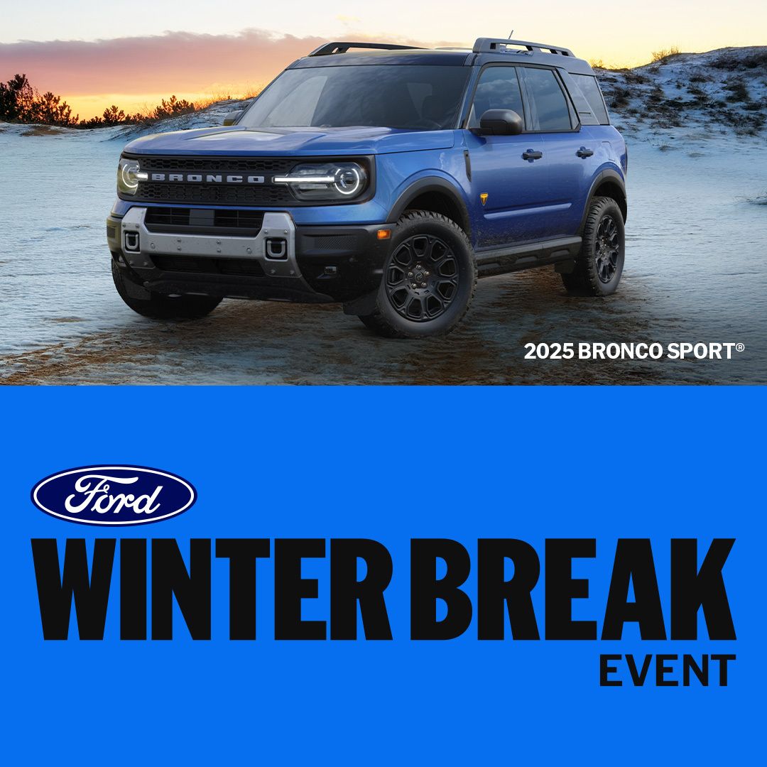 Heaslip FordGo where others fear to tread this winter in the SUV that’s built for it with standard 4x4 capability. Until January 13th, get 0% APR purchase financing for up to 60 months on all 2025 Bronco Sport models, plus an additional $1,000 Dealer Discount, and receive a $1,000 Bonus during the Ford Winter Break Event. Contact our Sales Team today for details! |