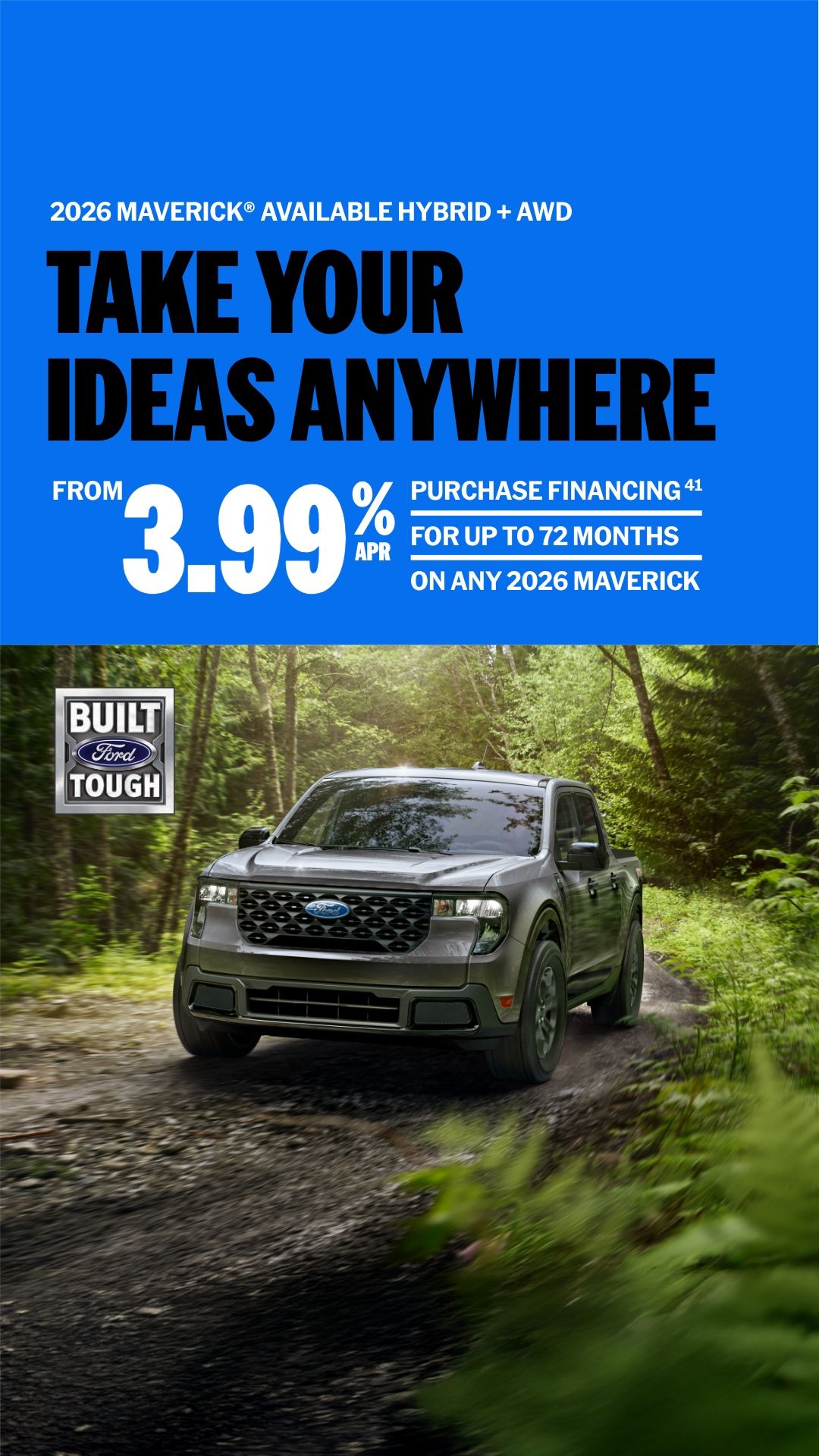 Heaslip FordThe all-new Ford Maverick is available at Heaslip Ford in Hagersville! With compact capability, you’re ready for road trips, job sites and everything in between. Right now, take advantage of rates as low as 3.99% APR purchase financing for up to 72 months on all 2026 Maverick models. Visit us in Hagersville or online at HeaslipFord.com today! |