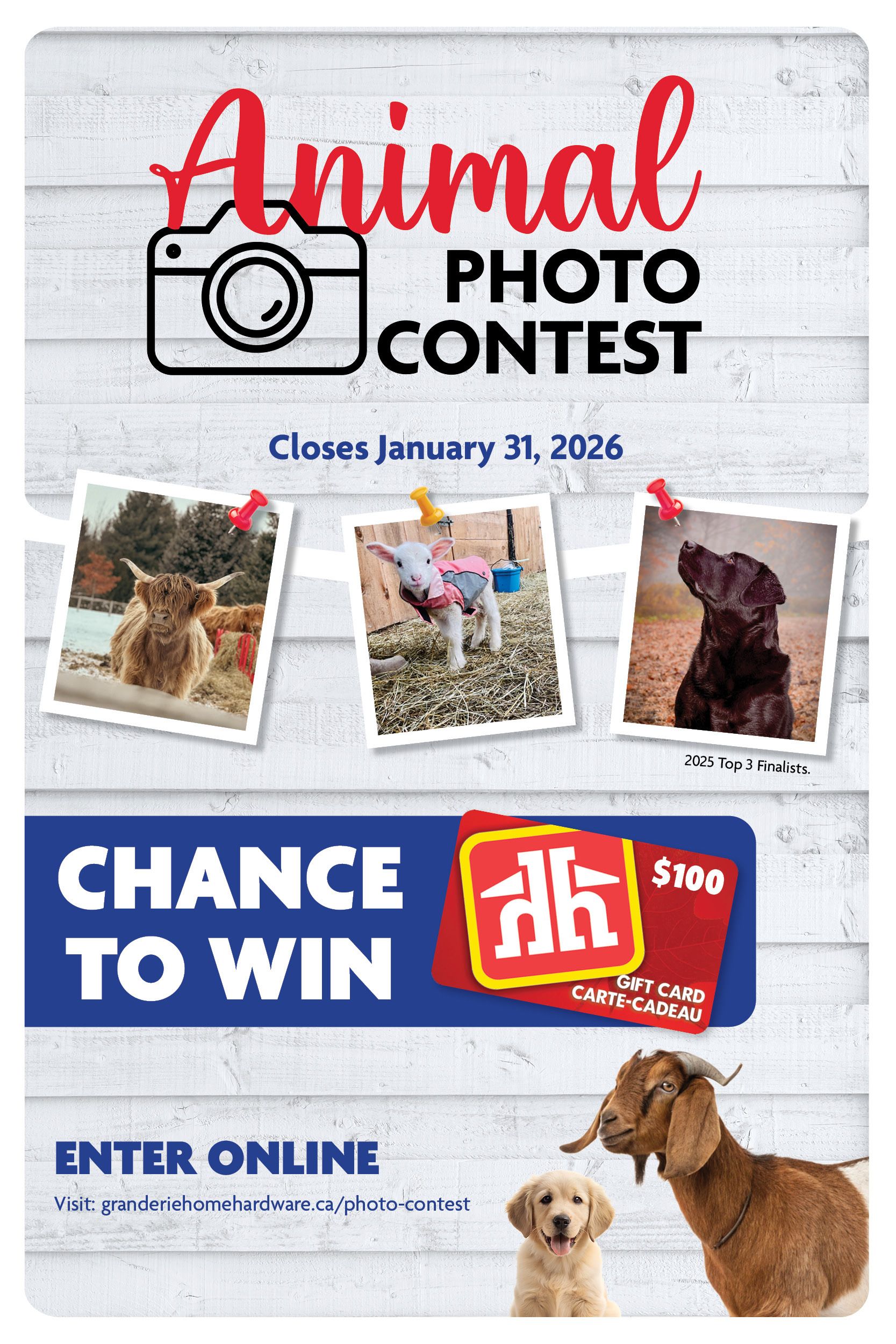 GrandErie Home Hardware🐶🐱Enter our ANIMAL PHOTO CONTEST! 🐦🐔🐷 Submit your favourite photograph of your farm animals, wildlife, birds, or pets before January 31 for a chance to win a $100 Home Hardware Gift Card! ✔️One entry per person ✔️No purchase necessary ENTER HERE: granderiehomehardware.ca/photo-contest The winner will be announced on Tuesday, February 17 🏆✨ |