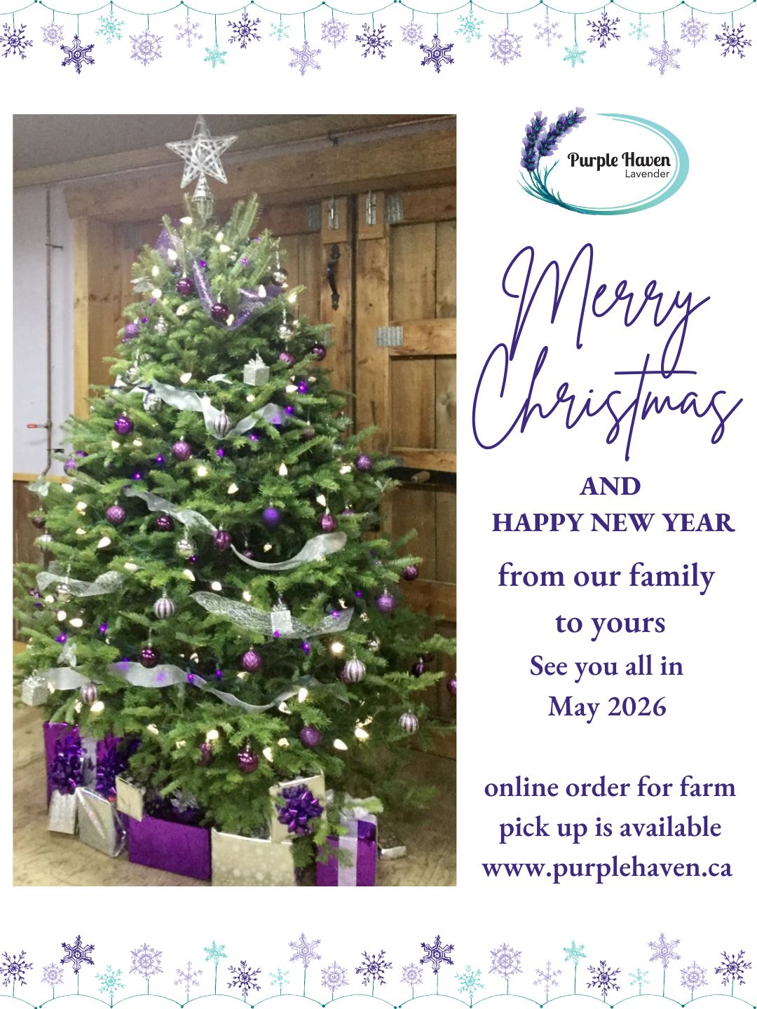 Purple Haven Lavender FarmPurple Haven Lavender Farm is closed for the season, but we are not gone. Catch us at the Dunnville Farmers Market on Dec 20 and Dec 23 for last-minute gifts and winter favourites. Prefer a quieter plan? Order online anytime and choose farm pickup. Thank you for an incredible year and all your support. We cannot wait to see you again in May 2026. |